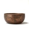 Hand-hammered aged copper vessel sink—a rustic round washbasin bowl for your bathroom vanity. Countertop basin with timeless character and warm patina.