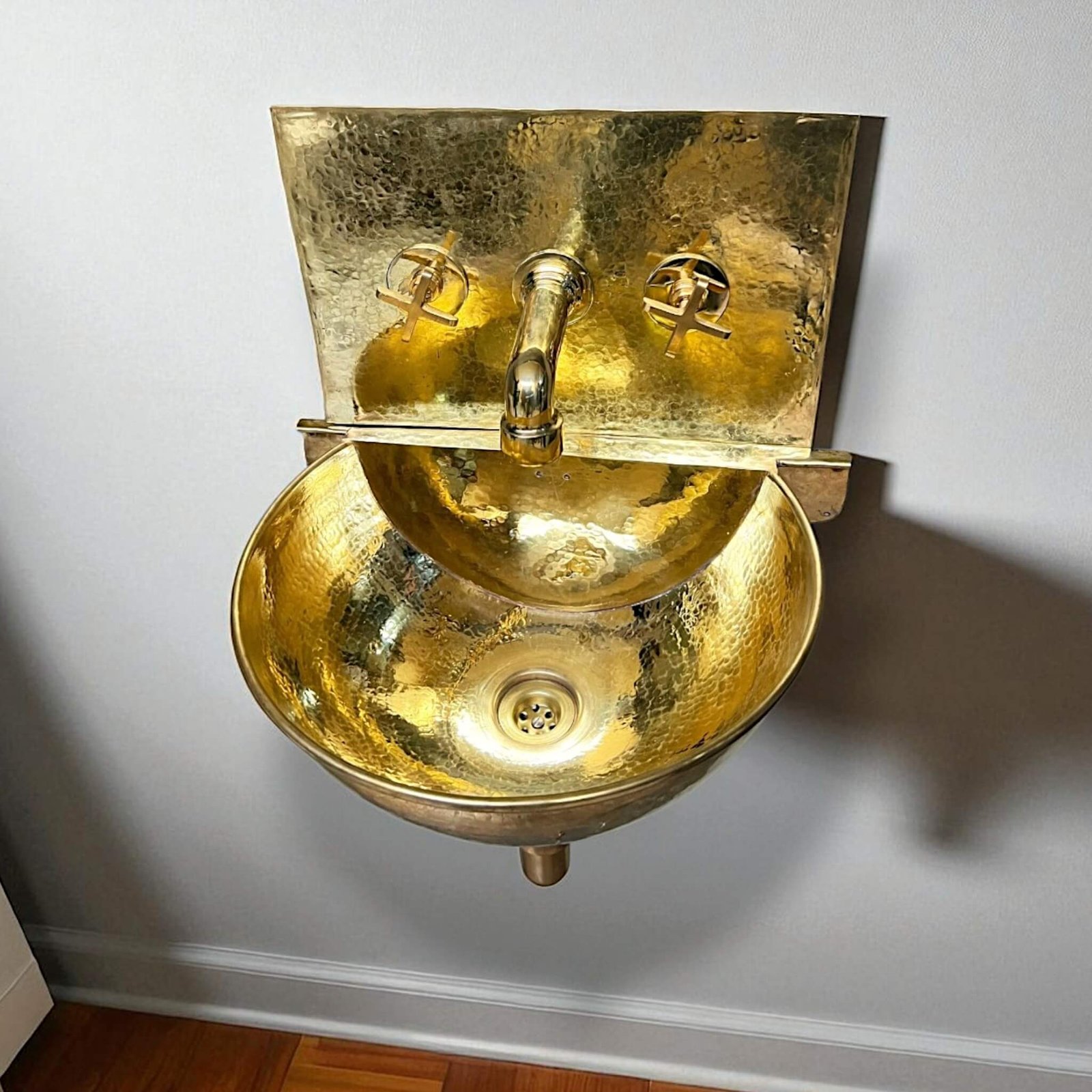 - Sink Material/Finish: Solid/brass-clad construction, brushed gold/brass finish
